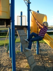 BOY ON CLIMBING FRAME