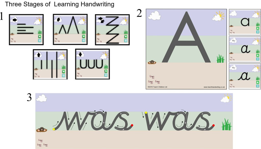For Teachers: https://teachhandwriting.co.uk/key-stage-1-handwriting-routes.html