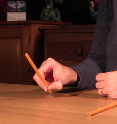 • Pick the pencil up off the table and place the fingernail of the middle finger on to the pencil just above the tip.