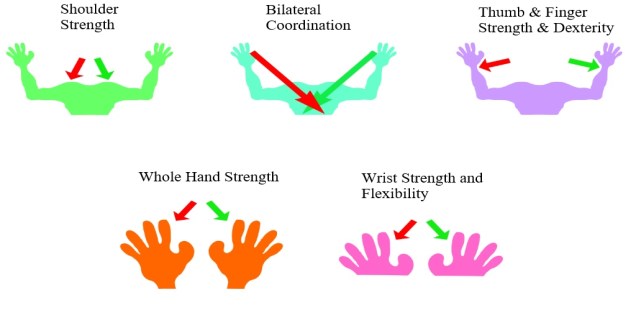 Five areas to support the body with handwriting are covered in the warm up exercises: